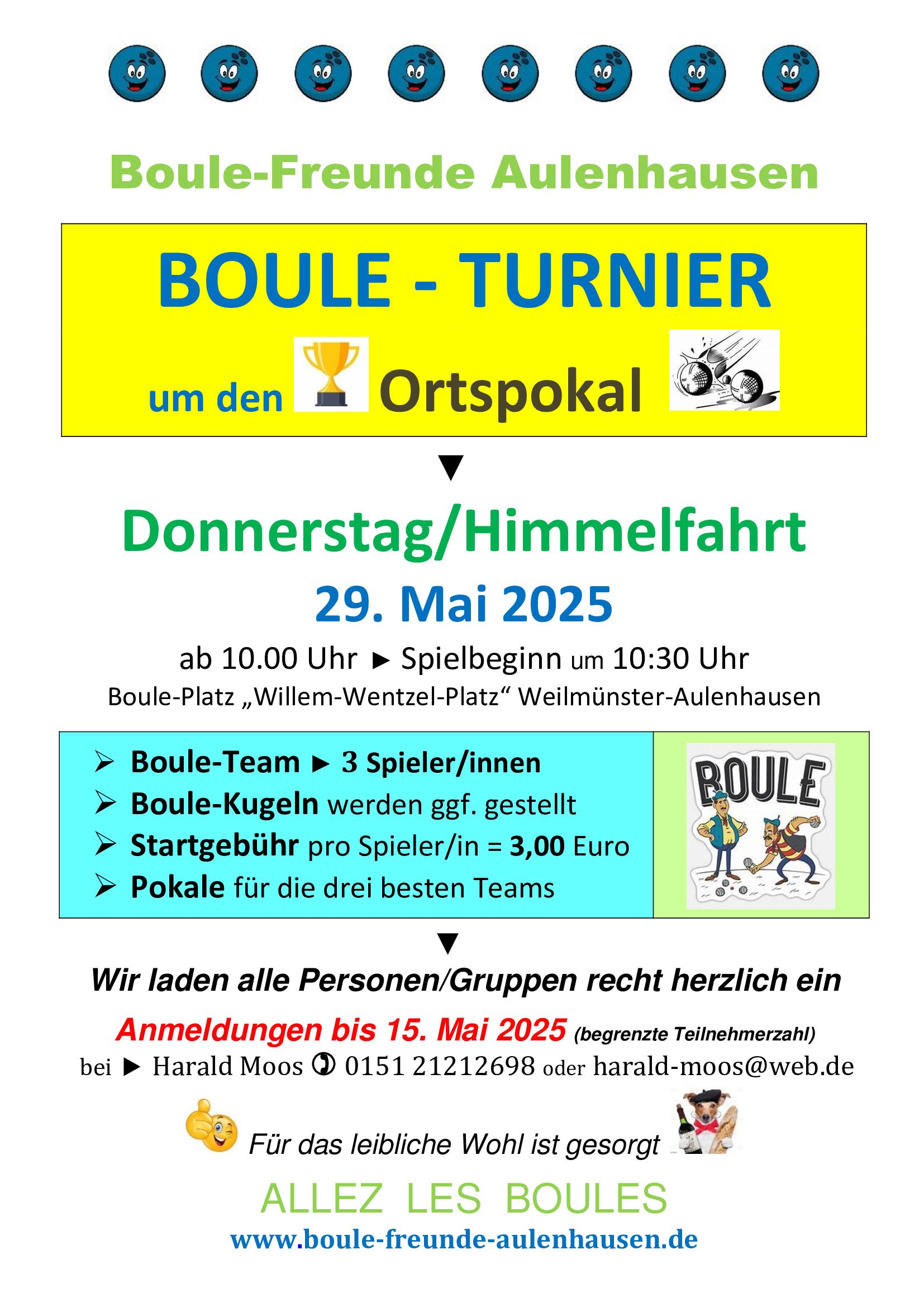 Das Boule-Turnier um den Ortspokal findet nicht statt !!!